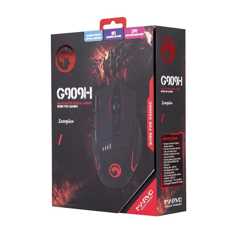 Scorpion RATÓN GAMING LED (MA-G909H), mano derecha, USB tipo A, 4800 DPI, Negro