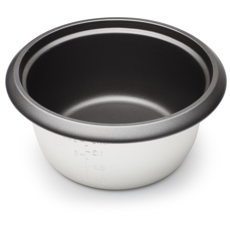 La arrocera está equipada con una cubeta interior con recubrimiento antiadherente que evita que el arroz se pegue a la cubeta y es muy fácil de limpiar. Además, la cubeta interior es extraíble por lo que es todavía más fácil limpiarla.