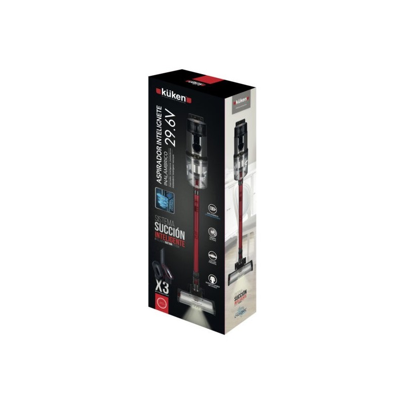 Küken 34130, Aspiradora escoba 2 en 1, Sin bolsa, Gris, Rojo, Rectangular, Secar, HEPA