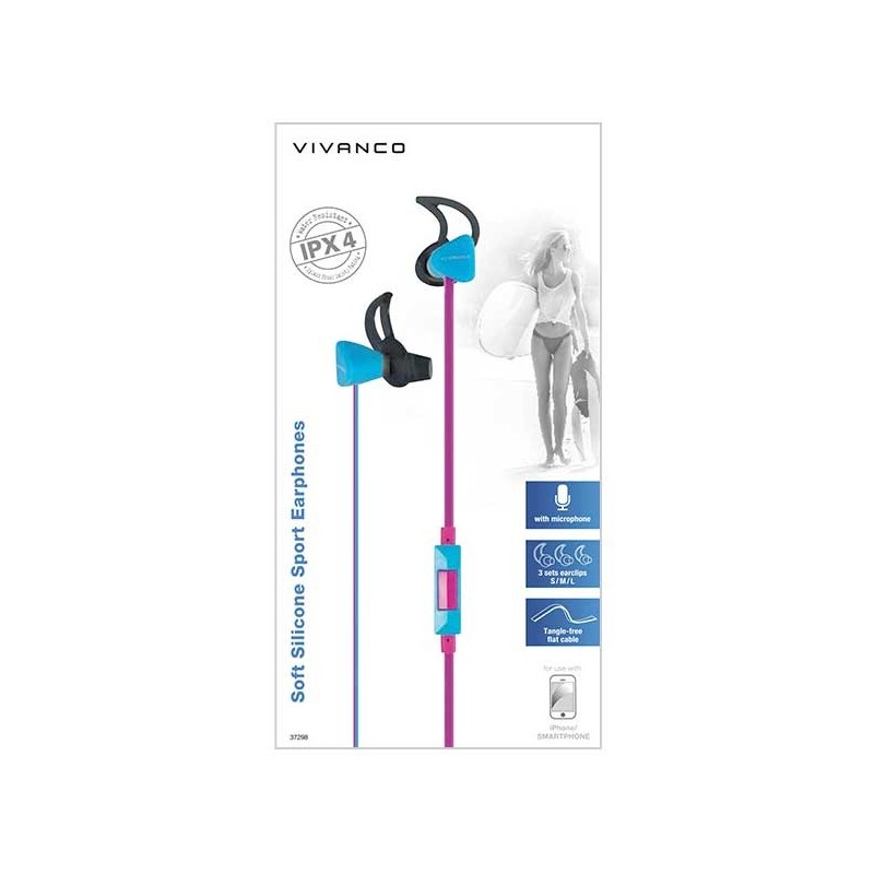 Vivanco SPX 60 P, Alámbrico, 15 - 22000 Hz, Deportes, Auriculares, Negro, Azul, Rosa