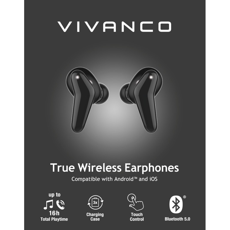 Vivanco Fresh Pair, Inalámbrico, Llamadas/Música, Auriculares, Negro
