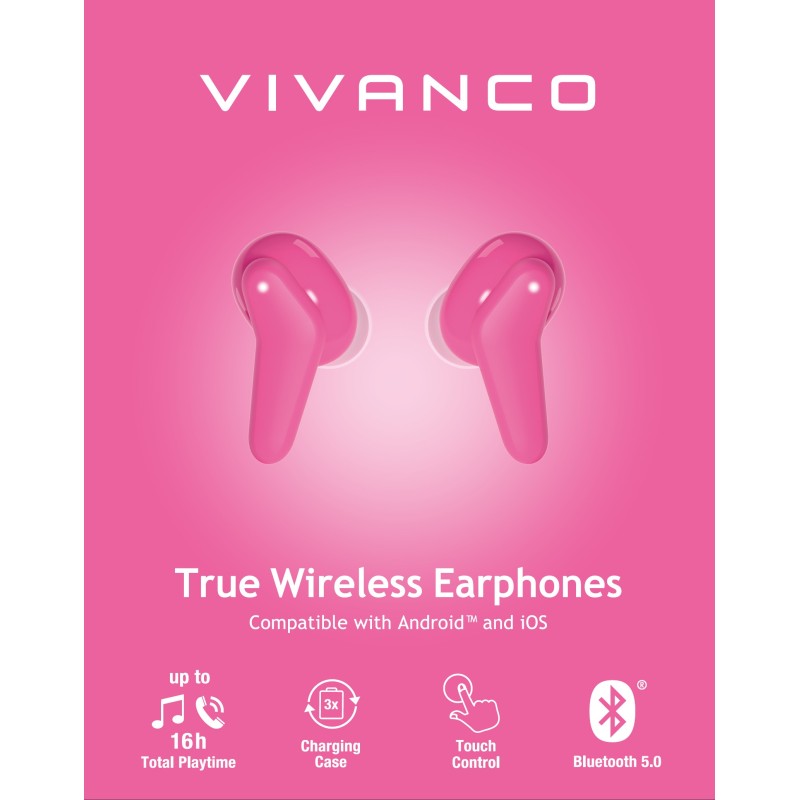 Vivanco Fresh Pair, Inalámbrico, Llamadas/Música, Auriculares, Rosa