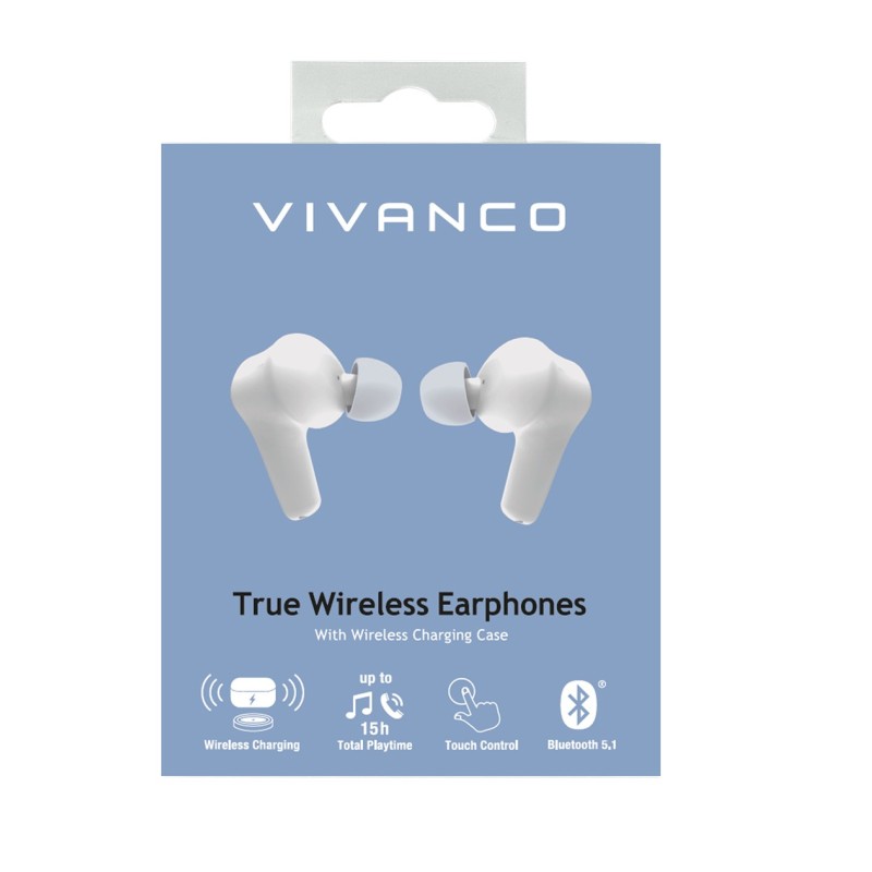 Vivanco COMFORT PAIR W, True Wireless Stereo (TWS), Llamadas/Música, Auriculares, Blanco