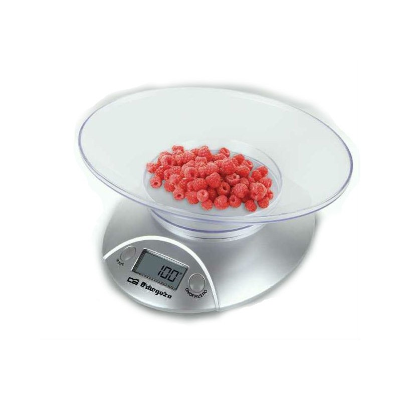 Orbegozo PC 1009, Báscula electrónica de cocina, 3 kg, 1 g, Gris, Botones, LCD