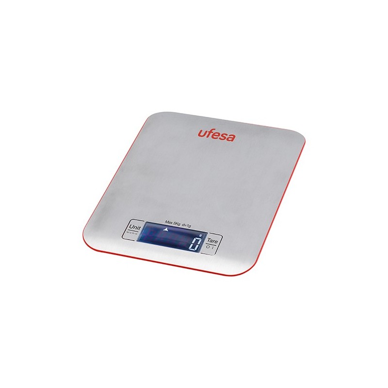 Ufesa BC1550, Báscula electrónica de cocina, 5 kg, 1 g, Acero inoxidable, Acero inoxidable, Encimera