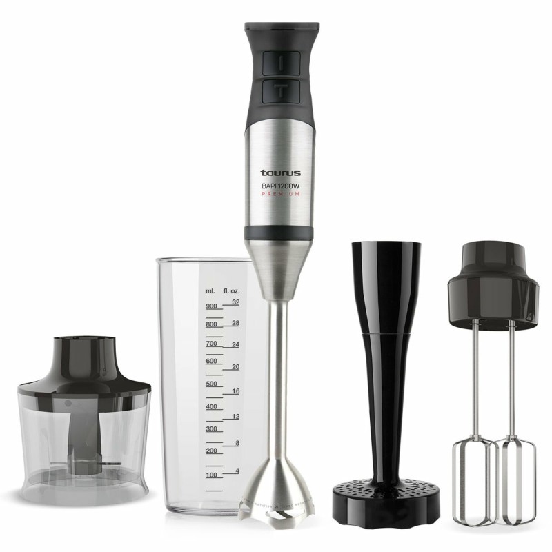 Taurus Bapi 1200 Premium Fullset, Batidora de inmersión, Picahielos, 1200 W, Negro, Acero inoxidable