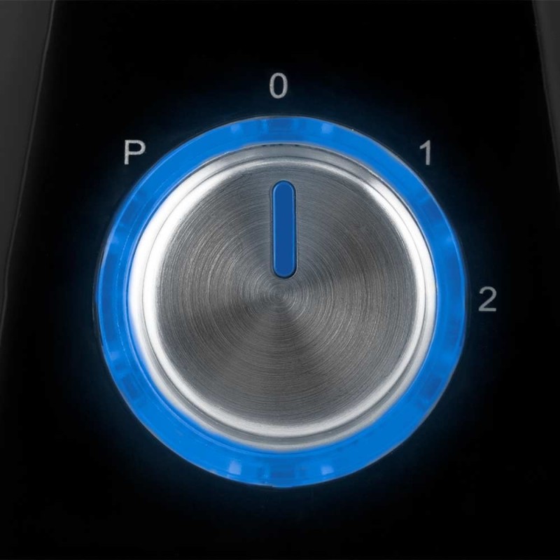 Además, tiene cuchillas de seis hojas con recubrimiento de titanio. Puedes disfrutarla en dos velocidades con opción “Pulse”, las cuales garantizan licuados y batidos de primera calidad.