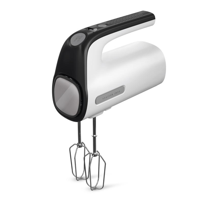 Fácil limpiezaLa batidora amasadora Station Inox es ergonómica y fácil de limpiar. Para desmontar las varillas sólo tendrás que pulsar un botón. Ambas varillas son aptas para el lavavajillas.