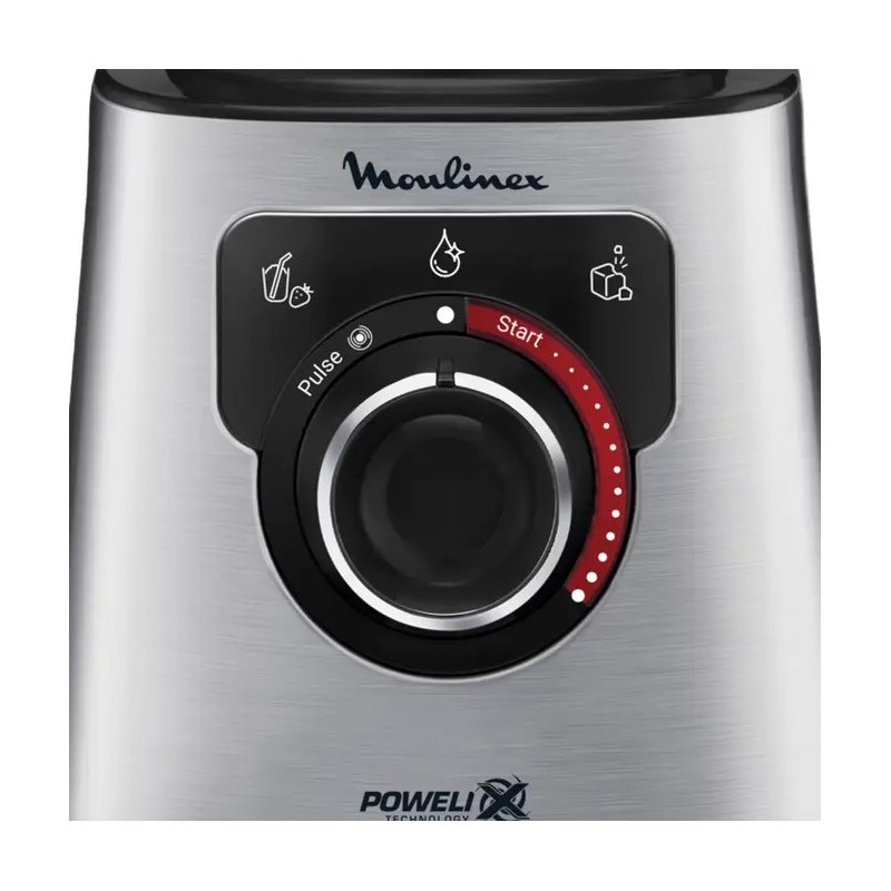 Moulinex LM871D, Batidora de vaso, 1,5 L, Función de impulso, Picahielos, 1200 W, Acero inoxidable, Gris