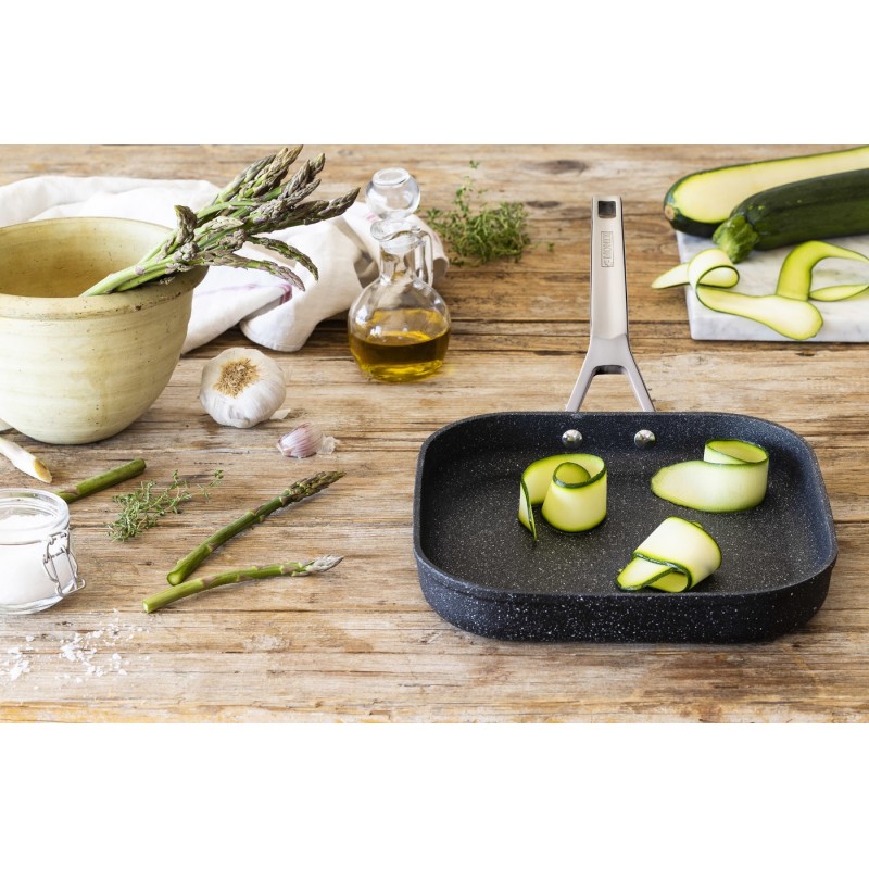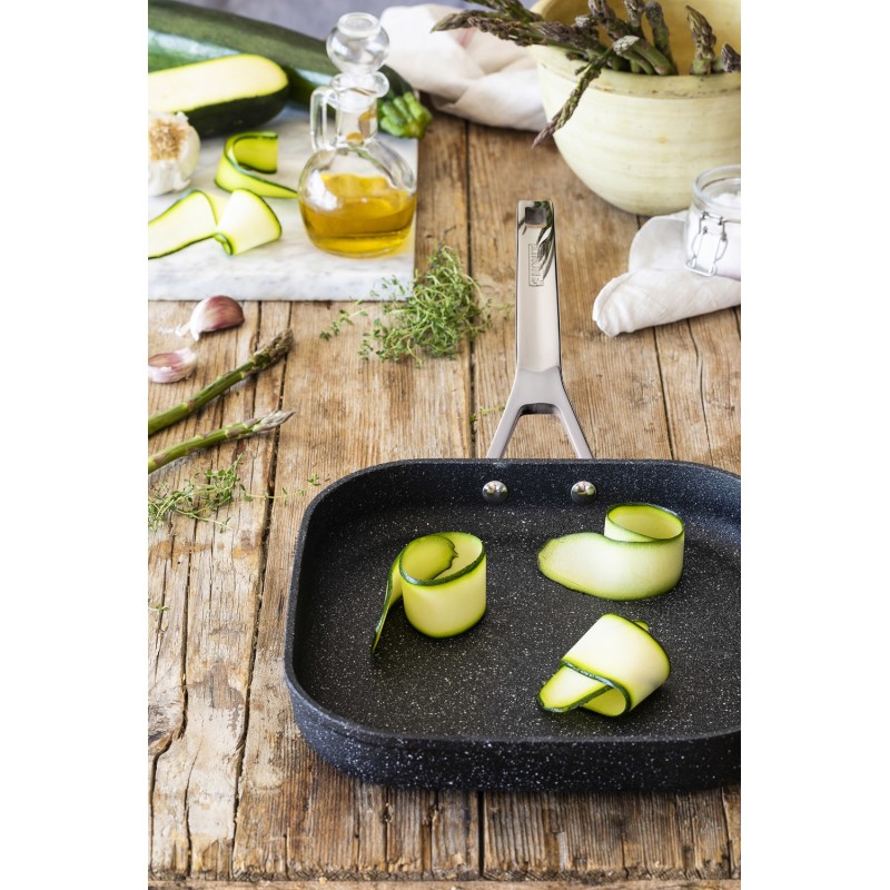 Monix M741229, Plaza, Sartén parrilla, Negro, QuanTanium, 220 °C, Aluminio, Acero inoxidable