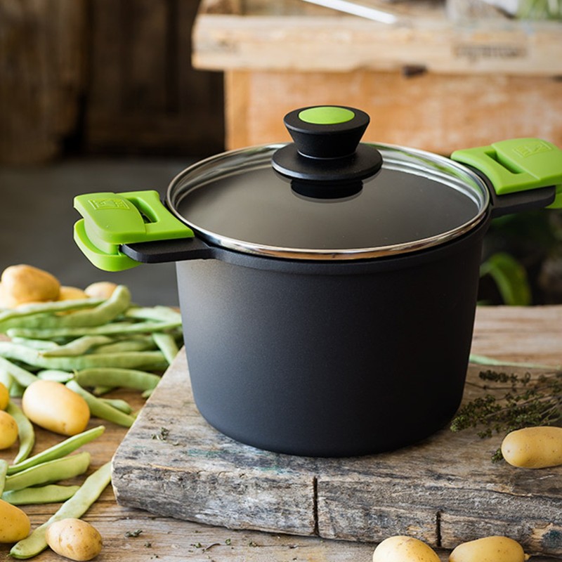 La olla alta Prior es una olla ideal para el día a día en la cocina, representando una de las mejores en relación calidad-precio, uniendo la calidad con el diseño moderno. Es una olla robusta fabricada en aluminio fundido con un revestimiento antiadherente Teflon Classic libre de PFOA. Es apta para todas las fuentes de calor (incluida la inducción) gracias a su fondo difusor full induction. Además tiene un excelente reparto de la temperatura para una cocción perfecta de todas nuestras recetas. Incluye dos asas de silicona en color verde para coger la olla con comodidad y tapa de cristal.