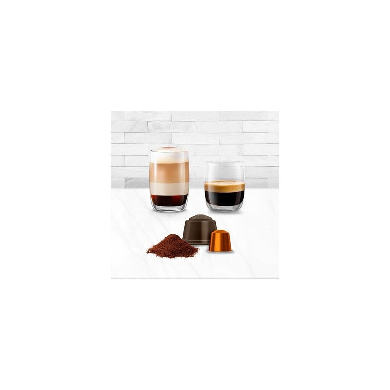 La cafetera multicápsula Bellagio se convertirá en un imprescindible en los desayunos de tu hogar. Es compatible con cápsulas tipo Nespresso y Dolce Gusto* y también con café molido, para que puedas disfrutar de una gran variedad de sabores.