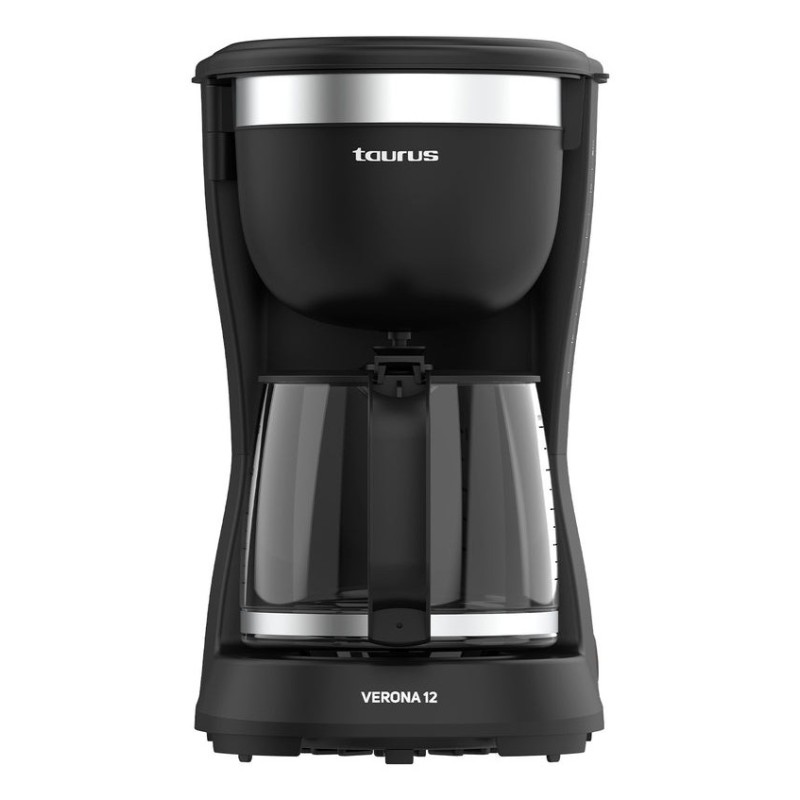 Taurus VERONA 12. Tipo de producto: Cafetera de filtro, Máquina de café: Manual, Capacidad de reservorio de agua: 1,25 L, Café tipo de entrada: De café molido, Depósito para café preparado: Jarra, Capacidad en tazas: 12 tazas. Potencia: 680 W. Color del producto: Negro
