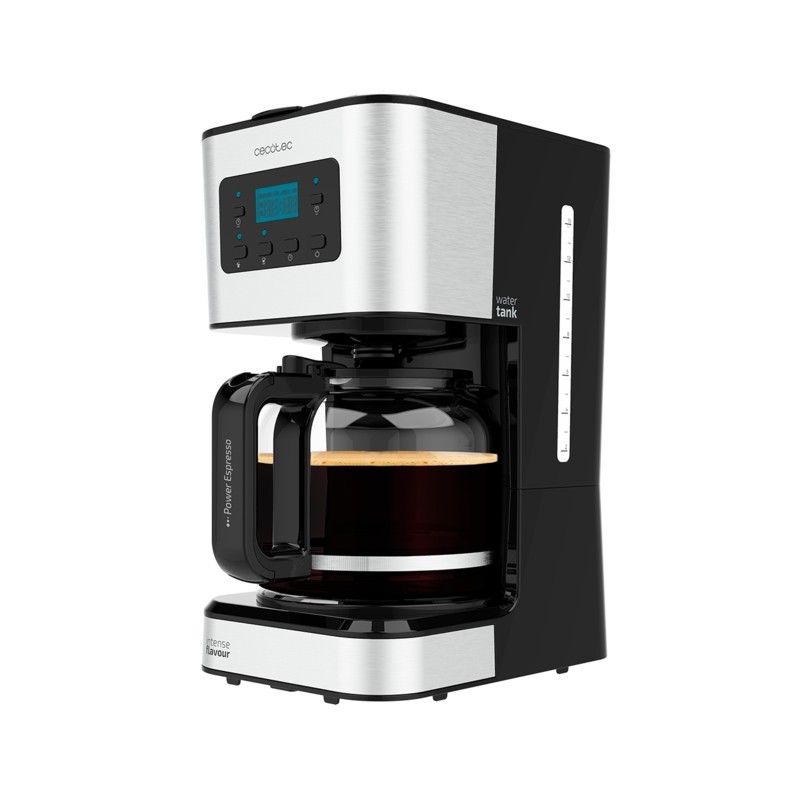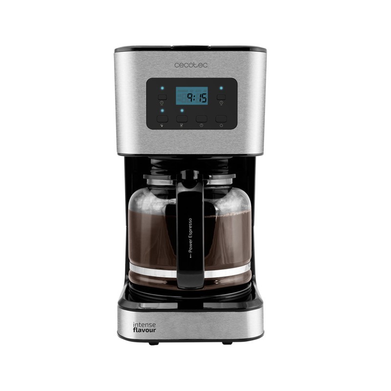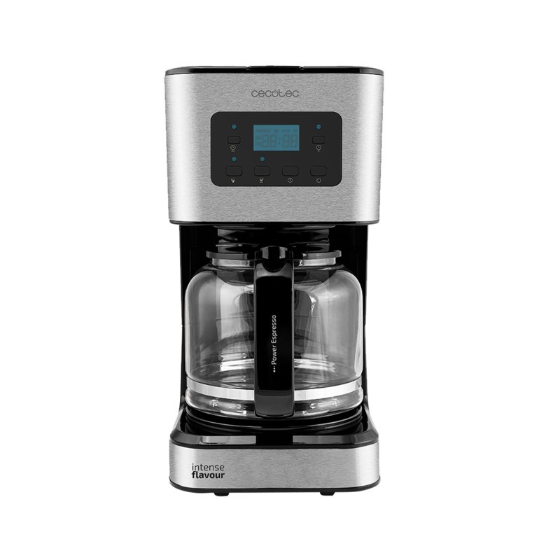 Cecotec 01555. Tipo de producto: Cafetera de filtro, Máquina de café: Semi-automática, Capacidad de reservorio de agua: 1,5 L, Café tipo de entrada: De café molido, Depósito para café preparado: Jarra, Capacidad en tazas: 12 tazas. Tipo de visualizador: LCD. Potencia: 950 W. Color del producto: Acero inoxidable