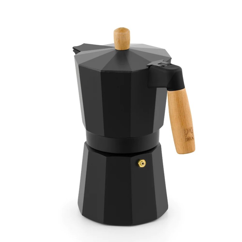 La cafetera Bra Market combina un estilo escandinavo con una gran calidad para la mesa y la cocina. Su acabado en aluminio negro mate de la más alta calidad y su mango de madera natural de haya la convierten en una cafetera moderna y atemporal al mismo tiempo que dará a tu hogar un ambiente práctico y funcional.