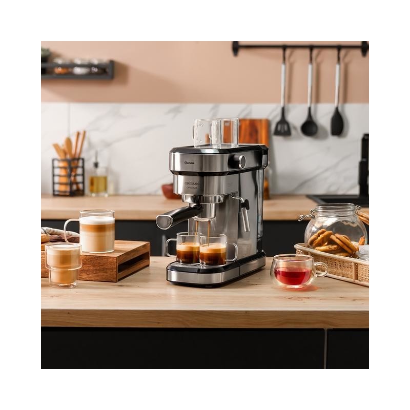 Cecotec 01646. Tipo de producto: Máquina espresso, Máquina de café: Semi-automática, Capacidad de reservorio de agua: 1,2 L, Café tipo de entrada: Cápsula de café, Depósito para café preparado: Taza. Potencia: 1350 W. Color del producto: Acero inoxidable
