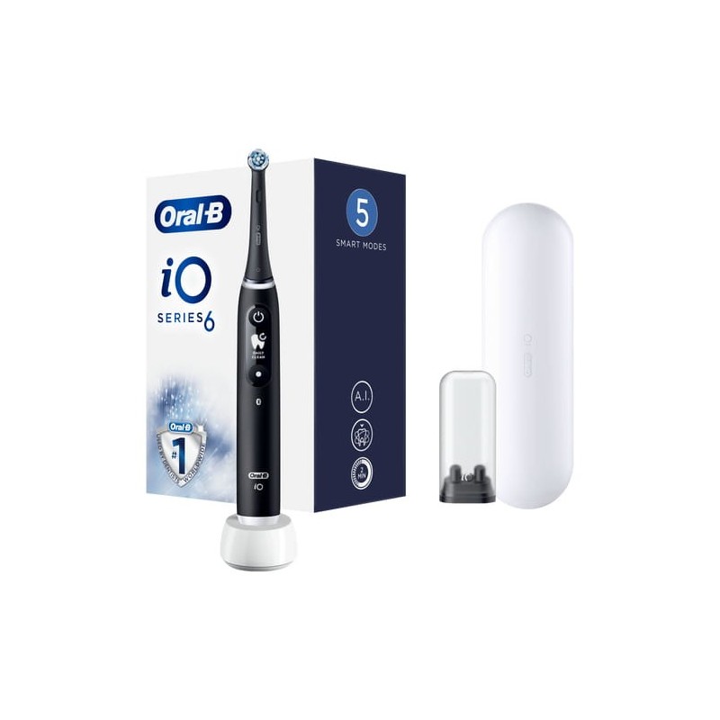 Oral-B iO 6. Utilizar con: Adulto, Tipo de cepillo de dientes: Cepillo de dientes oscilante, Modos del cepillo de dientes: Intenso, Cuidados diarios, Cuidado de las encías, Sensible, Blanqueador. Fuente de energía: Batería, Tipo de batería: Batería integrada. Número de empuñaduras incluidas: 1 pieza(s), Número de cabezales incluido: 1 pieza(s)