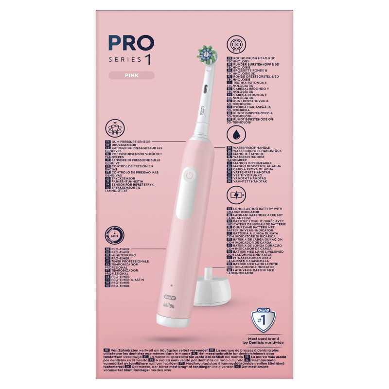 Oral-B Pro Series 1, Adulto, Cepillo dental oscilante, Cuidados diarios, Sensible, Blanqueador, 20000 movimientos por minuto, Rosa, 8800 movimientos por minuto
