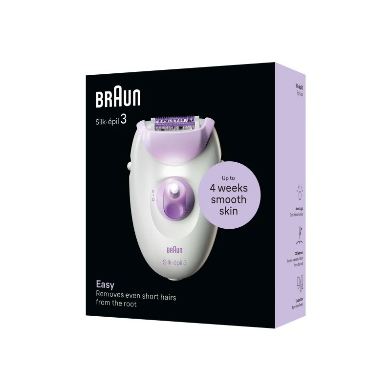 Braun Silk-épil 3 3-000, Púrpura, Blanco, 20 pinzas, MicroGrip, Corriente alterna, 100 - 240 V, 50 - 60 Hz