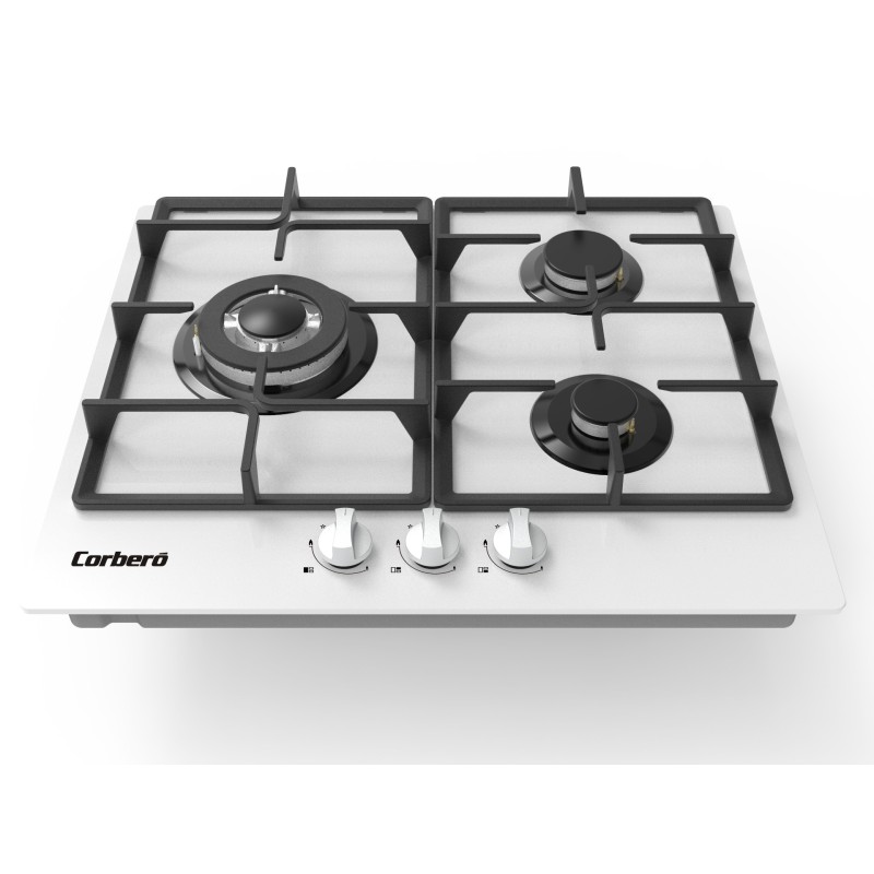 Corbero CPCGM3F3122W, Blanco, Integrado, 60 cm, Encimera de gas, Vidrio, 3 zona(s)