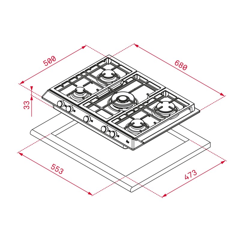 Teka EX 70.1 5G AI AL DR CI, Acero inoxidable, Integrado, 68 cm, Encimera de gas, Acero inoxidable, 5 zona(s)