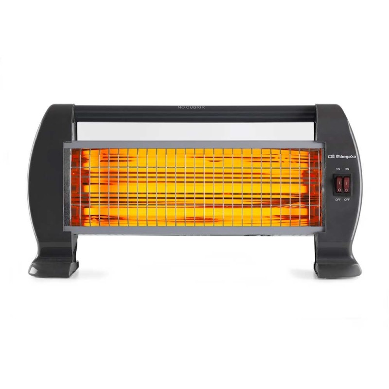 Orbegozo BP 0206. Tipo: Calefactor eléctrico de cuarzo, Calefacción tipo de elemento: Cristal de cuarzo. Adecuado para: Interior, Opciones de colocación: Escritorio, Piso, Mesa, Color del producto: Negro. Potencia de calentamiento: 1200 W, Potencia de calentamiento (min): 400 W. Voltaje de entrada AC: 230 V, Frecuencia de entrada AC: 50 Hz. Ancho: 490 mm, Profundidad: 120 mm, Altura: 260 mm