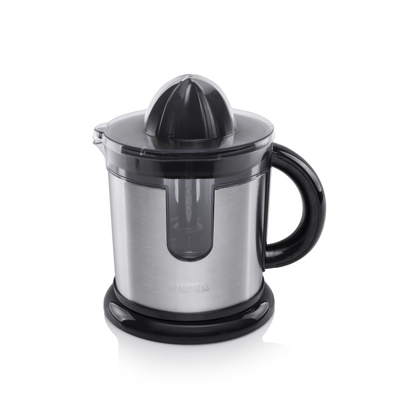 El exprimidor Princess Duo Juicer cuenta tanto con una boquilla de zumo directa como con un depósito de zumo, por lo que nunca tendrá que elegir entre beber directamente o guardar el zumo recién exprimido. La práctica boquilla de zumo se puede colocar en el exprimidor para que el zumo caiga directamente en el vaso. Al dejar esta parte fuera, podrá recoger el zumo con el depósito de zumo de 1,2 litros que puede cerrar y guardar en el frigorífico. Consiga rápidamente un vaso de zumo recién exprimido y exprima zumo suficiente para toda la familia en el depósito de zumo.