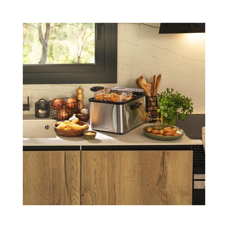 El tamaño perfecto con 4,2 lCon la cubeta de 4,2 litros y el cestillo de freír de gran capacidad podrás cocinar una gran cantidad de los alimentos. Perfectas guarniciones para acompañar tus platos, desde patatas fritas y aros de cebolla, hasta empanadillas o barritas de pescado. Además, su diseño en acero inoxidable la convierte en el complemento perfecto para tu cocina, adaptándose a todos los estilos y gustos.
