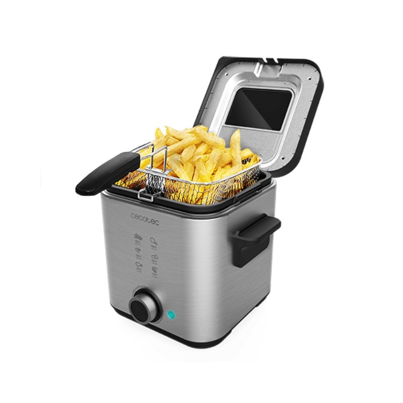 Cecotec 03102. Tipo de producto: Freidora, Capacidad: 1,5 L, Temperatura (máx): 190 °C. Tipo de construcción: Sencillo, Color del producto: Acero inoxidable, Tipo de control: Giratorio. Potencia: 900 W, Voltaje de entrada AC: 220 - 240 V, Frecuencia de entrada AC: 50 - 60 Hz. Ancho: 225 mm, Profundidad: 255 mm, Altura: 227 mm. Ancho del paquete: 297 mm, Profundidad del paquete: 258 mm, Altura del paquete: 280 mm