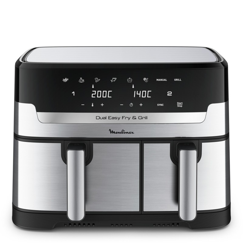 Moulinex Dual Easy Fry EZ905D20, Freidora de aire caliente, 8,3 L, Doble, Negro, Acero inoxidable, Tocar, Independiente