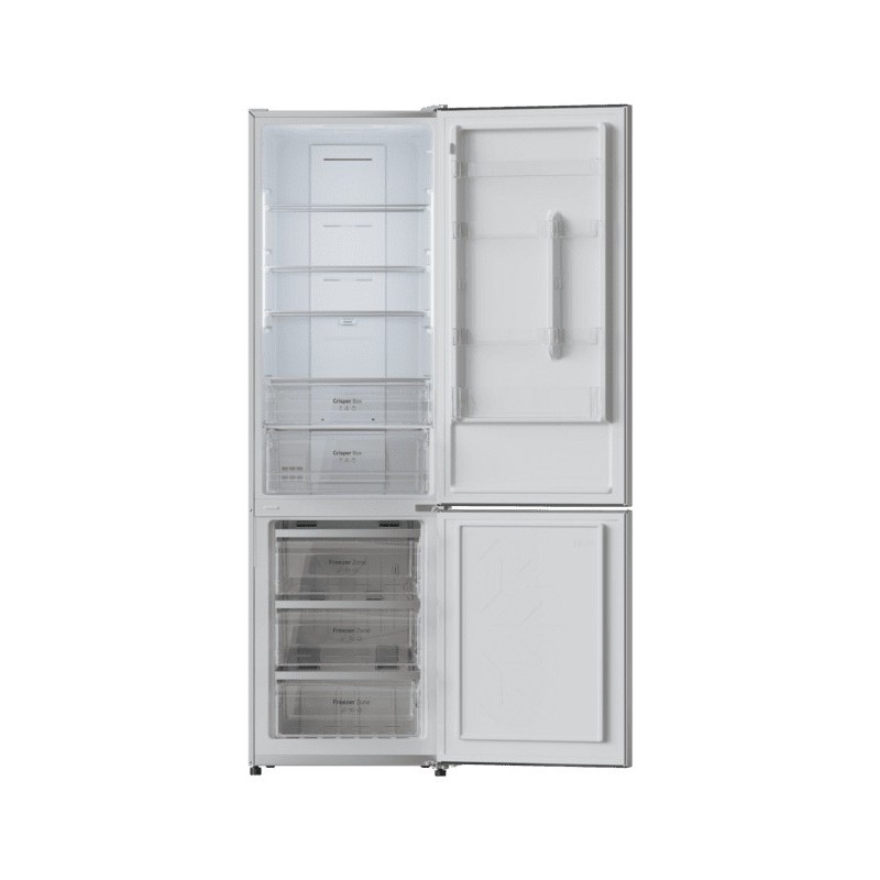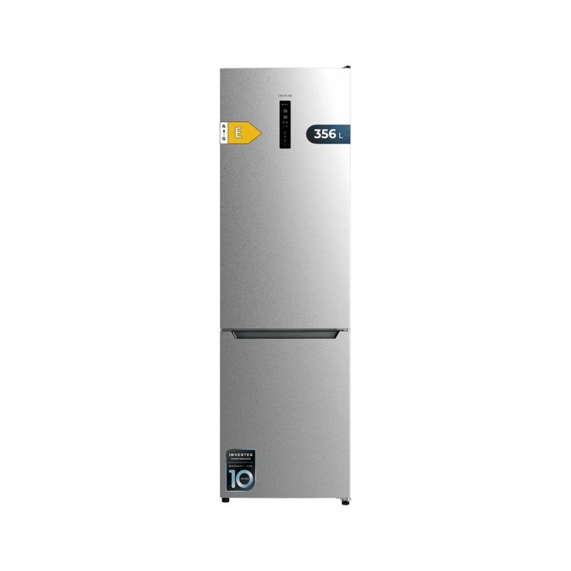 Cecotec 02147. Capacidad neta total: 356 L. Bisagra para puerta: Derecho. Clase climática: SN-T, Nivel de ruido: 41 dB. Frigorífico, capacidad neta: 260 L, Antiescarcha (nevera), Sistema multi-flujo de aire (nevera), Luz interior de la nevera, Frigorífico, número de compartimentos: 4. Congelador, capacidad neta: 96 L, Capacidad de congelación: 6 kg/24h, Antiescarcha (congelador). Clase de eficiencia de energía: E, Consumo de energía anual: 245 kWh. Color del producto: Acero inoxidable
