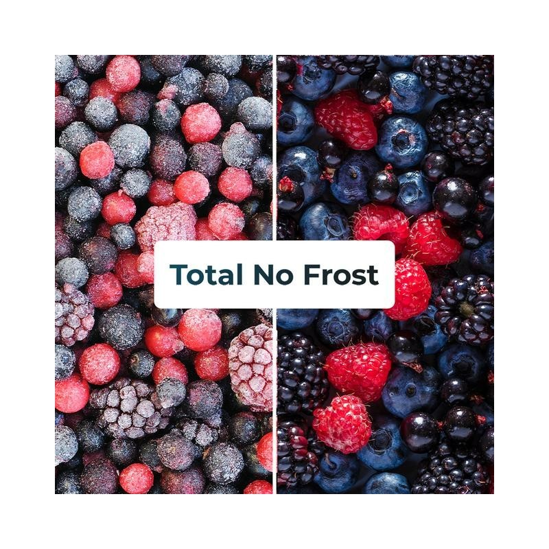 Enfría sin imprevistosEl sistema Total No Frost mantiene la temperatura uniforme en todo el interior y evita la formación de hielo para conservar tus alimentos en perfecto estado durante más tiempo.