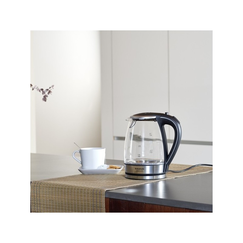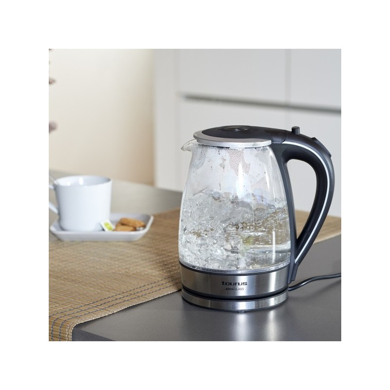Taurus Aroa. Capacidad de reservorio de agua: 1,8 L. Potencia: 2200 W. Color del producto: Transparente, Material de la carcasa: Vidrio, Indicador de nivel de agua. Sin cables. Filtrado