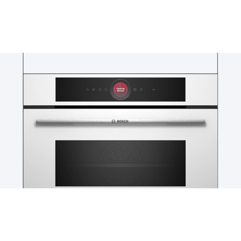 Bosch Serie 8 CMG7241W1. Tamaño del horno: Medio, Tipo de horno: Horno eléctrico, Total capacidad interior, horno (s): 45 L. Tipo de instalación: Integrado, Color del producto: Blanco, Tipo de control: Tocar. Tipo de temporizador: Digital, La duración del temporizador: 20 min. Carga conectada: 3600 W, Voltaje de entrada AC: 220 - 240 V, Corriente: 16 A. Tipo de lámpara: LED