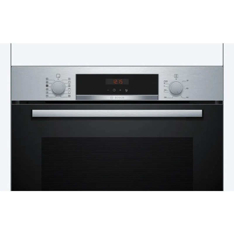 Bosch Serie 4 HQA574ES3. Tamaño del horno: Medio, Tipo de horno: Horno eléctrico, Total capacidad interior, horno (s): 71 L. Tipo de instalación: Integrado, Color del producto: Negro, Plata, Tipo de control: Giratorio. Clase de eficiencia de energía: A+, Consumo de energía (convencional): 0,94 kWh, Consumo de energía (convección forzada): 0,69 kWh. Ancho de compartimiento de instalación: 56 cm, Profundidad del compartimiento de instalación: 55 cm, Altura del compartimiento de instalación: 60 cm. Clase de eficiencia energética (antigua): A+