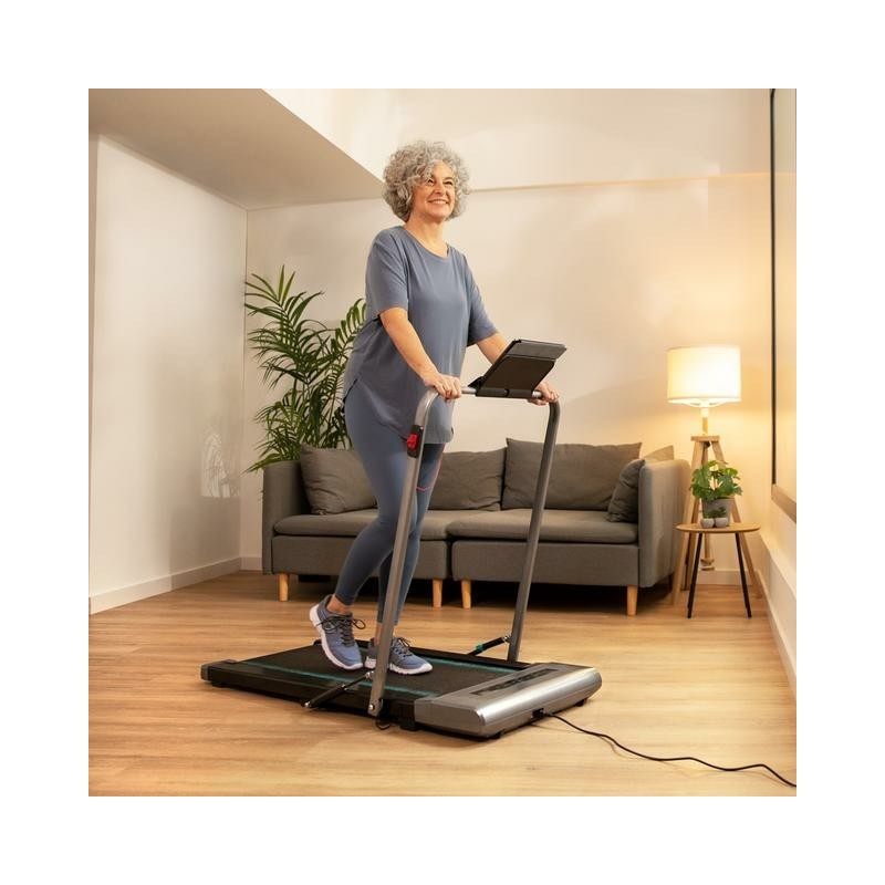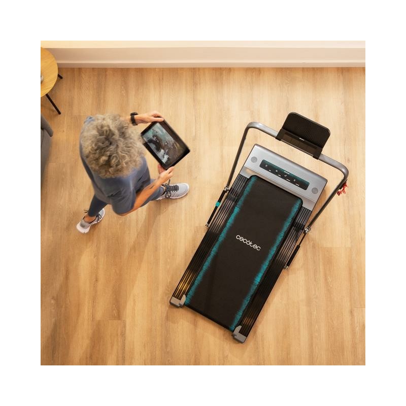 Toma el controlLa cinta cuenta con un mando a distancia para controlar la velocidad desde tu muñeca y un soporte para tablet para tener todo a tu alcance.