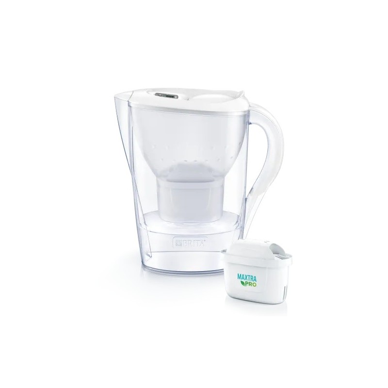 Brita Marella. Tipo de filtro de agua: Filtro para depósito de agua, Color del producto: Transparente, Blanco, Capacidad de reservorio de agua: 2,4 L. Ancho: 258 mm, Profundidad: 105 mm, Altura: 258 mm. Cantidad de cartuchos: 2 pieza(s), Cantidad por paquete: 1 pieza(s)