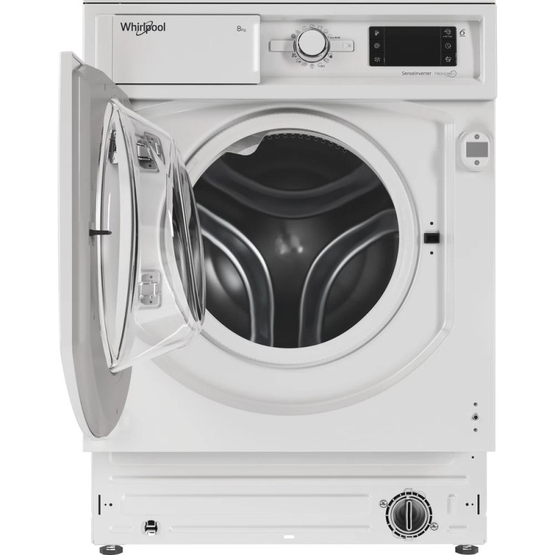 Las características de esta lavadora integrable Whirlpool: color blanco. Capacidad espaciosa de 8,0kg. Clasificación energética B. Rápida y eficiente velocidad de centrifugado de 1400 revoluciones por minuto. Tecnologia exclusiva 6th SENSE, que dinámicamente ajusta los parámetros según el tipo de carga, asegurando el máximo cuidado para tus prendas.