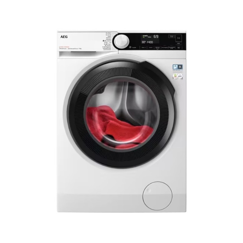AEG Series 6000 LFR7494O4V. Tipo de carga: Carga frontal. Capacidad nominal: 9 kg, Clase de secado por giro: B, Nivel de ruido (spin): 75 dB, Máxima velocidad de centrifugado: 1400 RPM. Color del producto: Blanco. Ancho: 597 mm, Profundidad: 631 mm, Altura: 847 mm. Clase de eficiencia de energía: A
