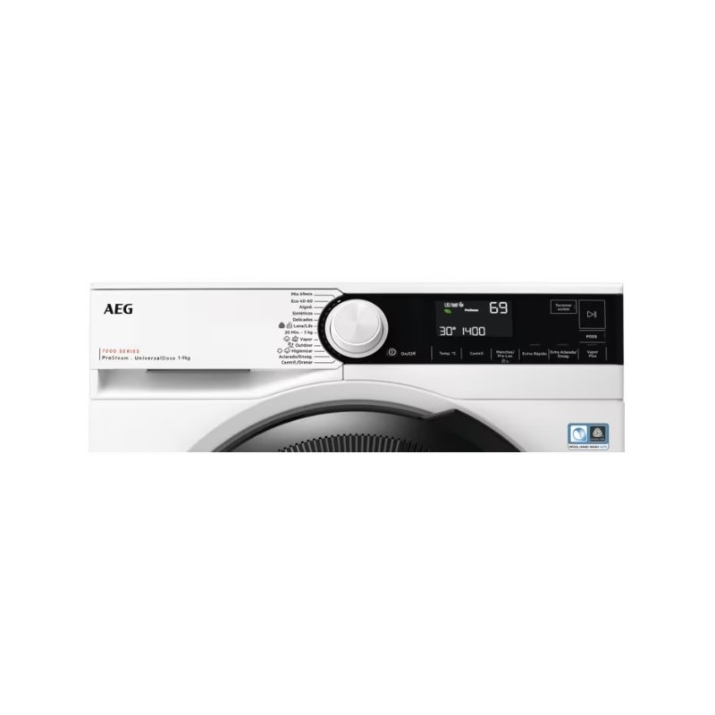 DETALLES DEL PRODUCTOLavadora AEG de la Serie 7000 ProSteam y cajón AutoDose y conectividad, de 9 kg de capacidad y centrifugado de hasta 1.400 rpm, panel de control Negro y puerta Negra, motor Inverter, programas a vapor ProSteam que reducen el planchado y tecnología PreciseWash que ahorra tiempo, agua y energía y tambor Care