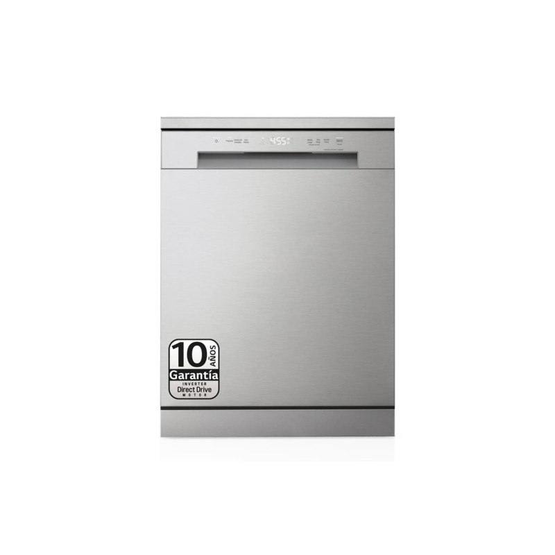 LG DF142FV. Tipo de instalación: Independiente, Talla del producto: Tamaño completo (60 cm), Color de la puerta: Acero inoxidable. Número de cubiertos: 14 cubiertos, Clase de emisión de ruido: C, Nivel de ruido: 45 dB. Ajuste de patas: 3 cm, Aplicaciones de control compatibles: LG ThinQ. Clase de eficiencia de energía: D, Consumo de agua por ciclo de lavado: 9,9 L, Consumo de energía por 100 ciclos: 85 kWh. Ancho: 600 mm, Profundidad: 600 mm, Altura: 850 mm