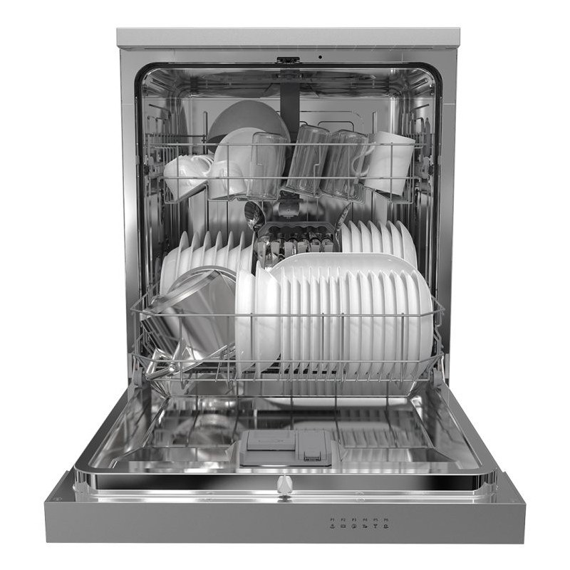 Estética blanca con 2 bandejas y cesta de cubiertos. Sistema de control táctil con Display LED con 6 programas de lavado y funciones para garantizar el mejor resultado y cuidado de la vajilla.