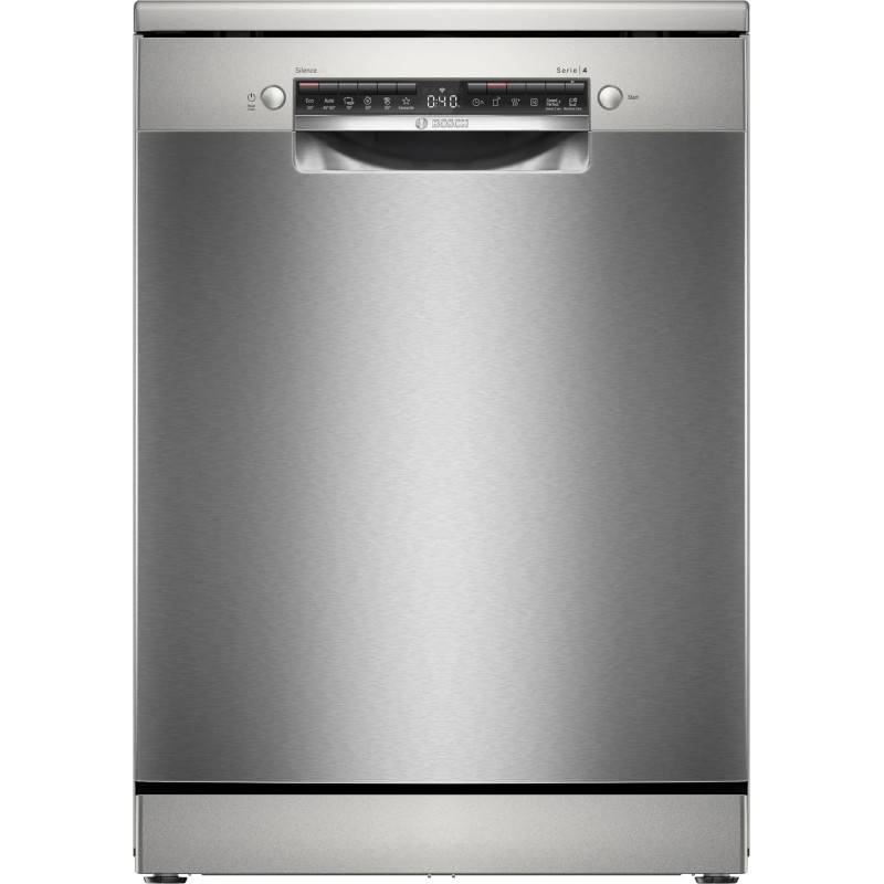 Bosch Serie 4 SMS4HKI07E. Tipo de instalación: Independiente, Talla del producto: Tamaño completo (60 cm), Color de la puerta: Acero inoxidable. Número de cubiertos: 13 cubiertos, Clase de emisión de ruido: B, Nivel de ruido: 42 dB. Ajuste de patas: 2 cm, Aplicaciones de control compatibles: Bosch Home Connect. Clase de eficiencia de energía: D, Consumo de agua por ciclo de lavado: 9 L, Consumo de energía por 100 ciclos: 84 kWh. Ancho: 600 mm, Profundidad: 600 mm, Altura: 845 mm