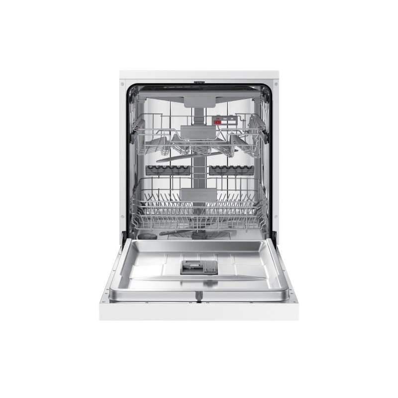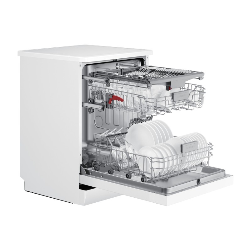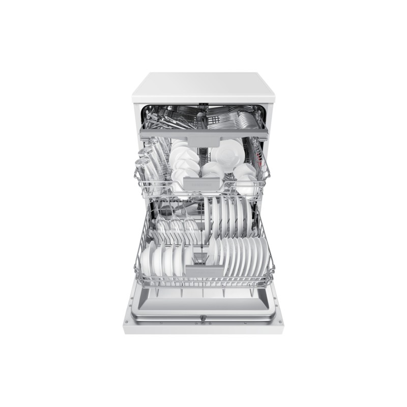 Samsung Lavavajillas Blanco de 14 cubiertos Clasificación Energética DDW60CG550FWQET. Tipo de instalación: Independiente, Talla del producto: Tamaño completo (60 cm), Color de la puerta: Blanco. Número de cubiertos: 14 cubiertos, Clase de emisión de ruido: B, Nivel de ruido: 44 dB. Clase de eficiencia de energía: D, Consumo de agua por ciclo de lavado: 10,5 L, Consumo de energía por 100 ciclos: 85 kWh. Ancho: 598 mm, Profundidad: 600 mm, Altura: 845 mm. Ancho del paquete: 655 mm, Profundidad del paquete: 645 mm, Altura del paquete: 875 mm