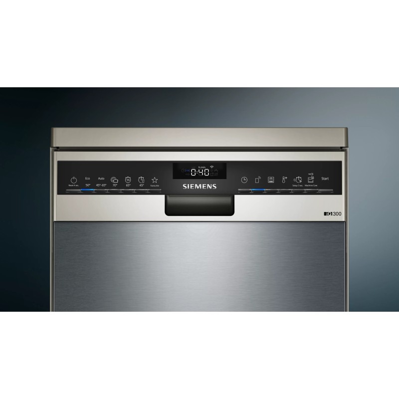 Siemens SR23EI28ME. Tipo de instalación: Independiente, Talla del producto: Estrecho (45 cm), Color de la puerta: Acero inoxidable. Número de cubiertos: 10 cubiertos, Clase de emisión de ruido: B, Nivel de ruido: 44 dB. Clase de eficiencia de energía: D, Consumo de agua por ciclo de lavado: 9,5 L, Consumo de energía por 100 ciclos: 67 kWh. Ancho: 450 mm, Profundidad: 600 mm, Altura: 845 mm. Peso del paquete: 43,2 kg