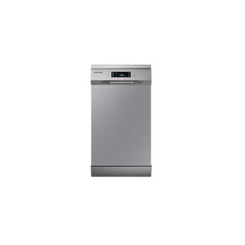 Samsung DW50R4070FS/EC. Tipo de instalación: Independiente, Talla del producto: Estrecho (45 cm), Color de la puerta: Acero inoxidable. Número de cubiertos: 10 cubiertos, Clase de emisión de ruido: B, Nivel de ruido: 44 dB. Clase de eficiencia de energía: E, Consumo de agua por ciclo de lavado: 9,5 L, Consumo de energía por 100 ciclos: 76 kWh. Ancho: 449 mm, Profundidad: 600 mm, Altura: 845 mm. Ancho del paquete: 510 mm, Profundidad del paquete: 650 mm, Altura del paquete: 885 mm