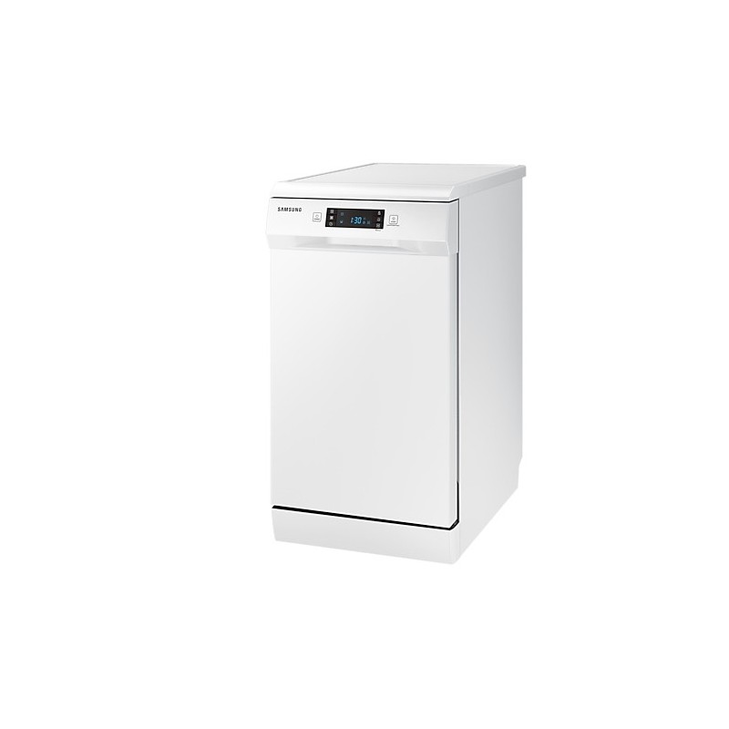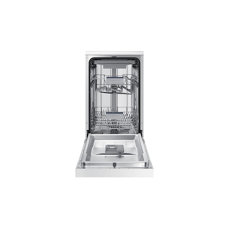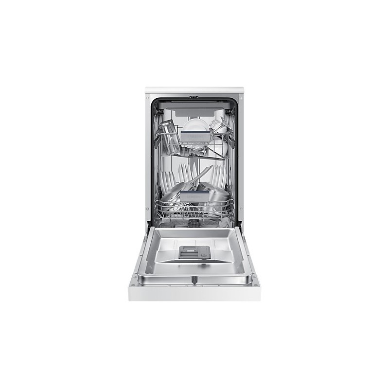 Samsung DW50R4070FW/EC. Tipo de instalación: Independiente, Talla del producto: Estrecho (45 cm), Color de la puerta: Blanco. Número de cubiertos: 10 cubiertos, Clase de emisión de ruido: B, Nivel de ruido: 44 dB. Clase de eficiencia de energía: E, Consumo de agua por ciclo de lavado: 9,5 L, Consumo de energía por 100 ciclos: 76 kWh. Ancho: 449 mm, Profundidad: 600 mm, Altura: 845 mm. Ancho del paquete: 510 mm, Profundidad del paquete: 650 mm, Altura del paquete: 885 mm