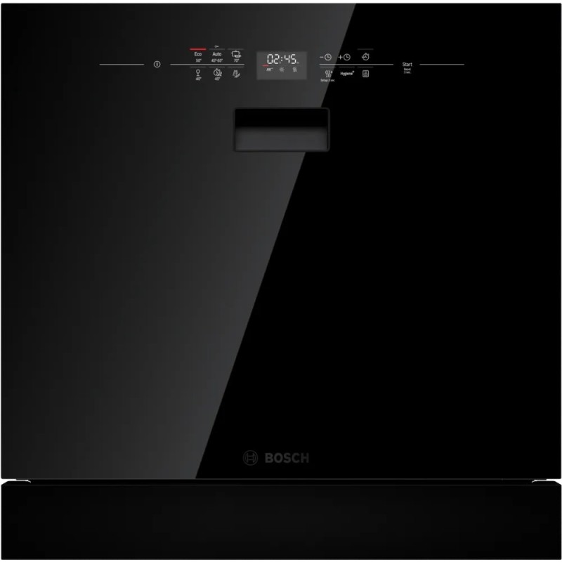 Bosch Serie 6 SCX6ITB00E. Tipo de instalación: Semi integrado, Talla del producto: Tamaño completo (60 cm), Color de la puerta: Negro. Número de cubiertos: 8 cubiertos, Clase de emisión de ruido: C, Nivel de ruido: 47 dB. Clase de eficiencia de energía: E, Consumo de agua por ciclo de lavado: 9 L, Consumo de energía por 100 ciclos: 65 kWh. Ancho: 595 mm, Profundidad: 500 mm, Altura: 595 mm. Tecnologías Bosch (lavado de platos): ActiveWater, Intensive zone
