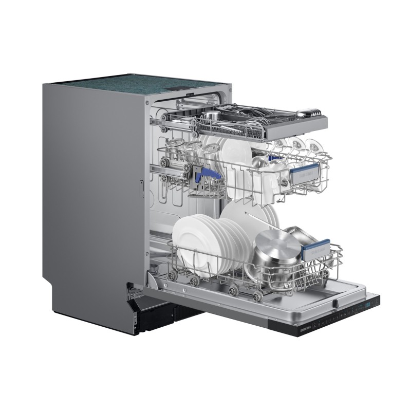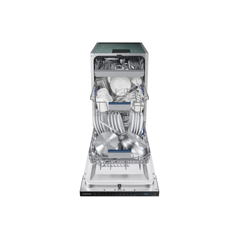 Samsung Lavavajillas Integrable 45cm 10 cubiertos Clase D Blanco DW50DG450B00ET. Tipo de instalación: Completamente integrado, Talla del producto: Estrecho (45 cm), Panel de control: Negro. Número de cubiertos: 10 cubiertos, Clase de emisión de ruido: B, Nivel de ruido: 44 dB. Clase de eficiencia de energía: D, Consumo de agua por ciclo de lavado: 9 L, Consumo de energía por 100 ciclos: 67 kWh. Ancho: 448 mm, Profundidad: 550 mm, Altura: 815 mm. Ancho del paquete: 510 mm, Profundidad del paquete: 650 mm, Altura del paquete: 885 mm