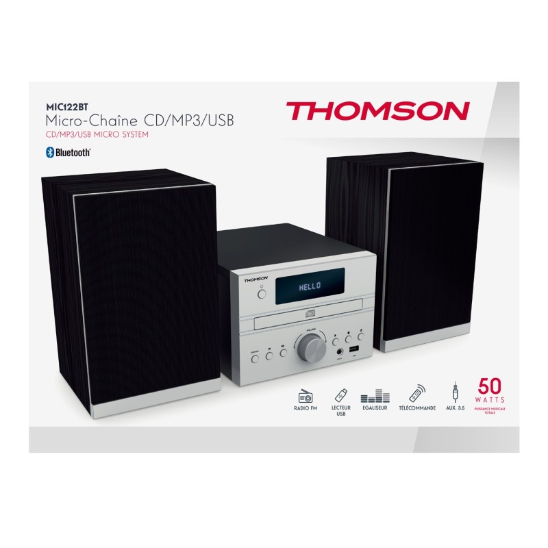 Thomson MIC122BT, Microcadena de música para uso doméstico, Negro, Plata, Frente, 50 W, FM, Exploración automática